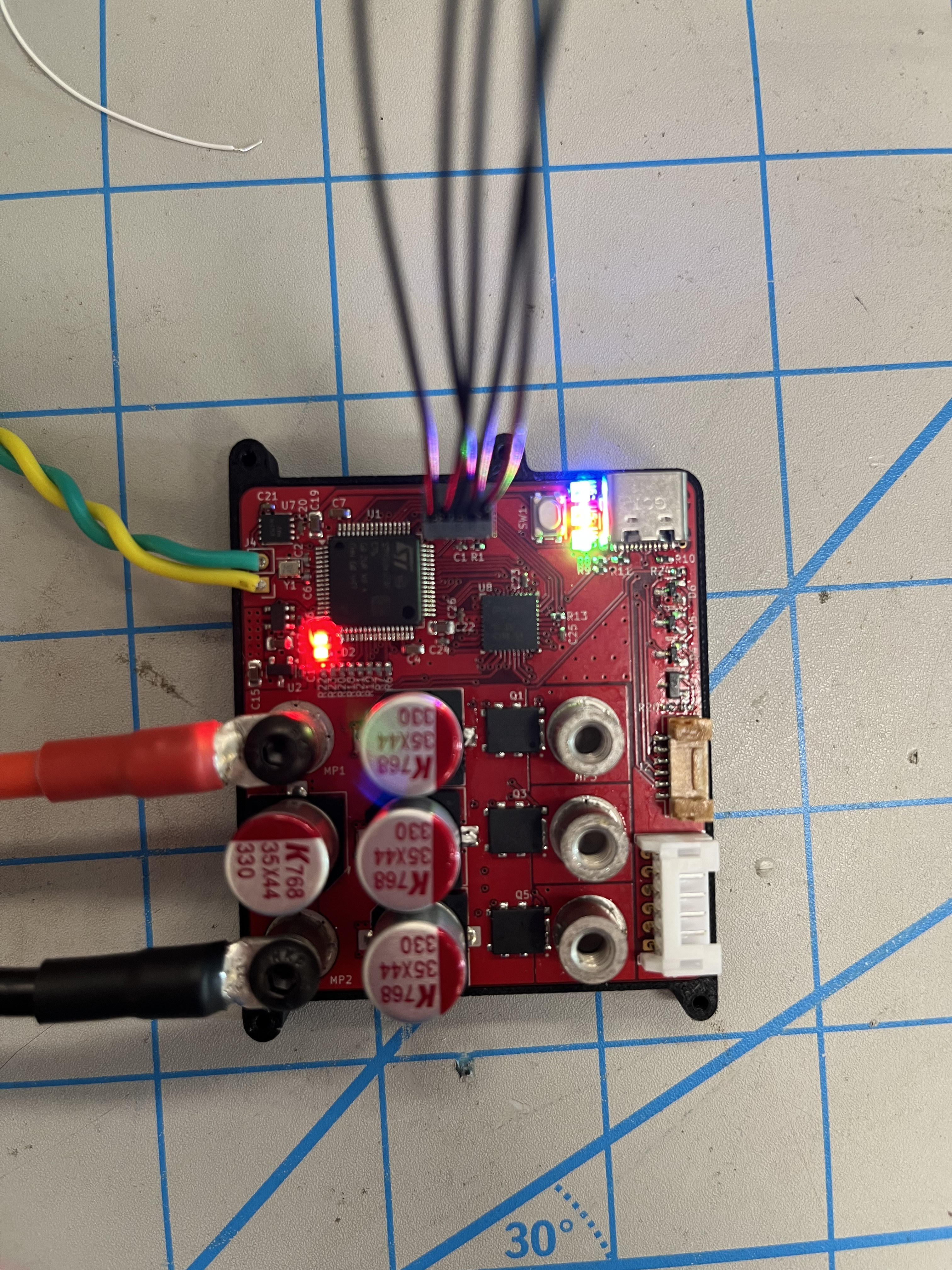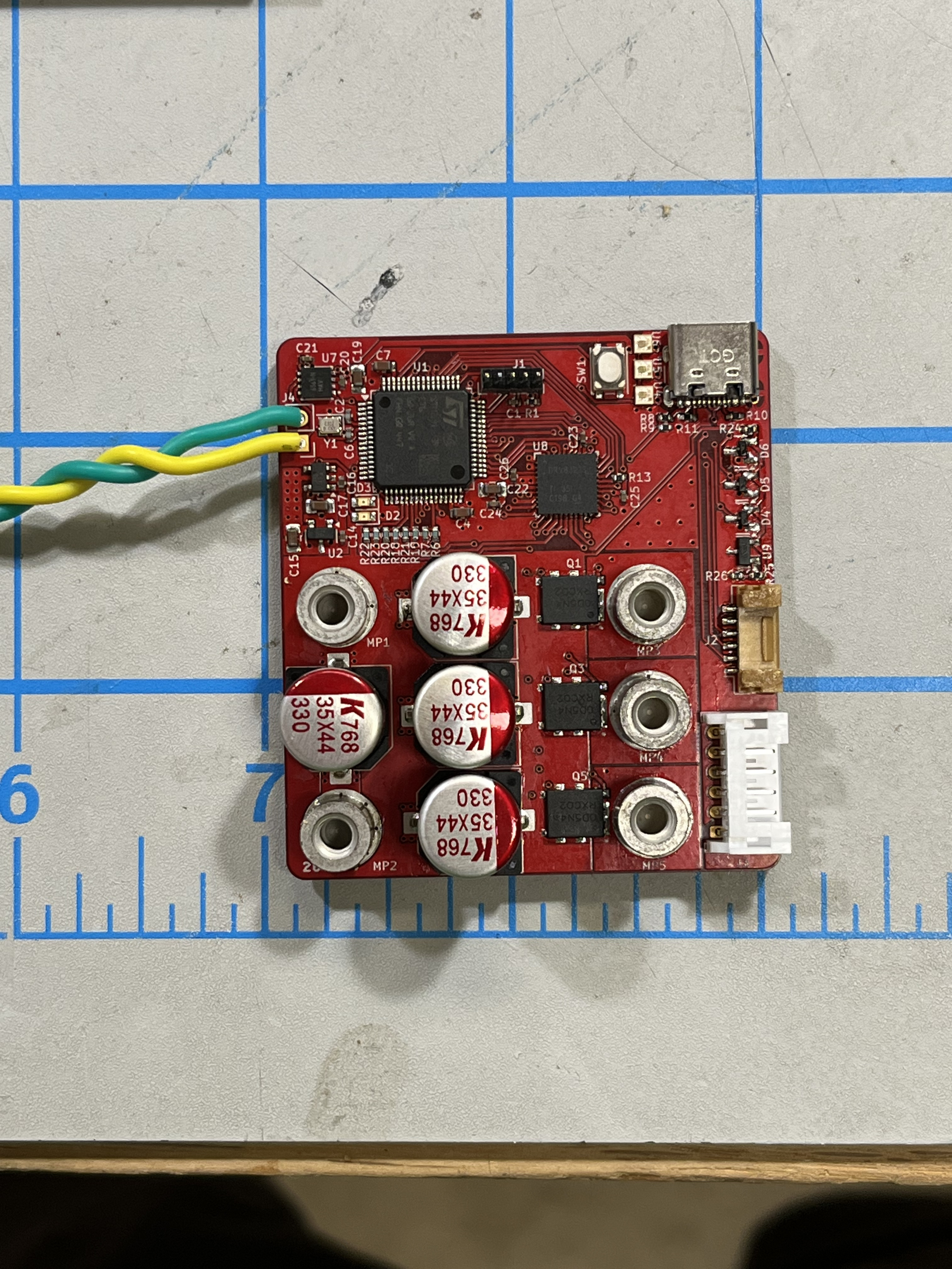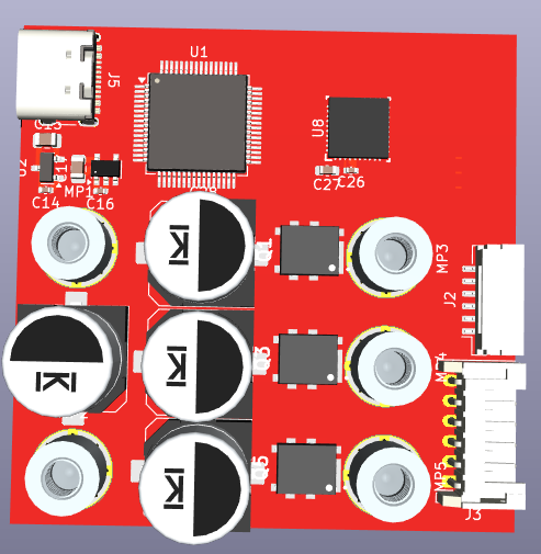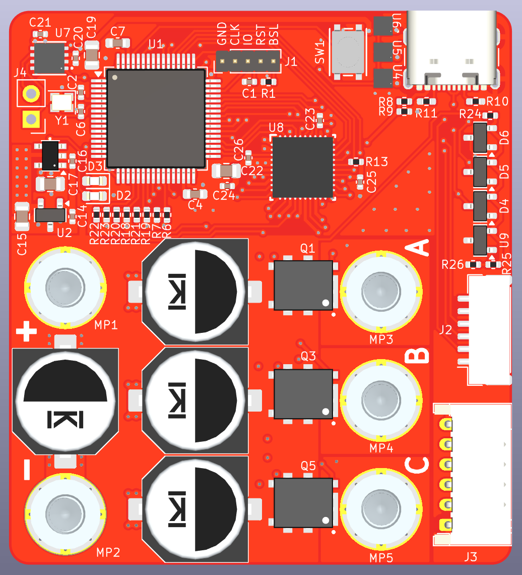 My first BLDC motor controller design, targeting 12V nominal operation and 40A peak current. Using the DRV8323 gate driver with integrated low-side current sensing, NTMFS0D5N04XMT1G FETs, and a STM32H523 MCU.
